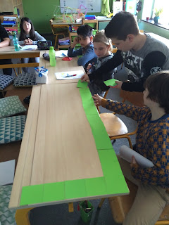 Daarna was het de beurt aan Andreas. Hij heeft ons geleerd om een helikoptertje uit papier te maken. Als je het in de lucht gooit, dwarrelt het mooi naar beneden. Maar hij had nog iets bij om ons te laten zien. Allemaal foto's van dieren met daar onder de naam van het dier geschreven. Maar dan had hij ook een blad bij met dezelfde foto's maar onder elke foto stond de naam van een ander dier. Probeer dit nu maar eens te lezen? Dit is heel erg verwarrend voor je hersenen en dus moeilijk om de dieren te benoemen. Knap gedaan Andreas!