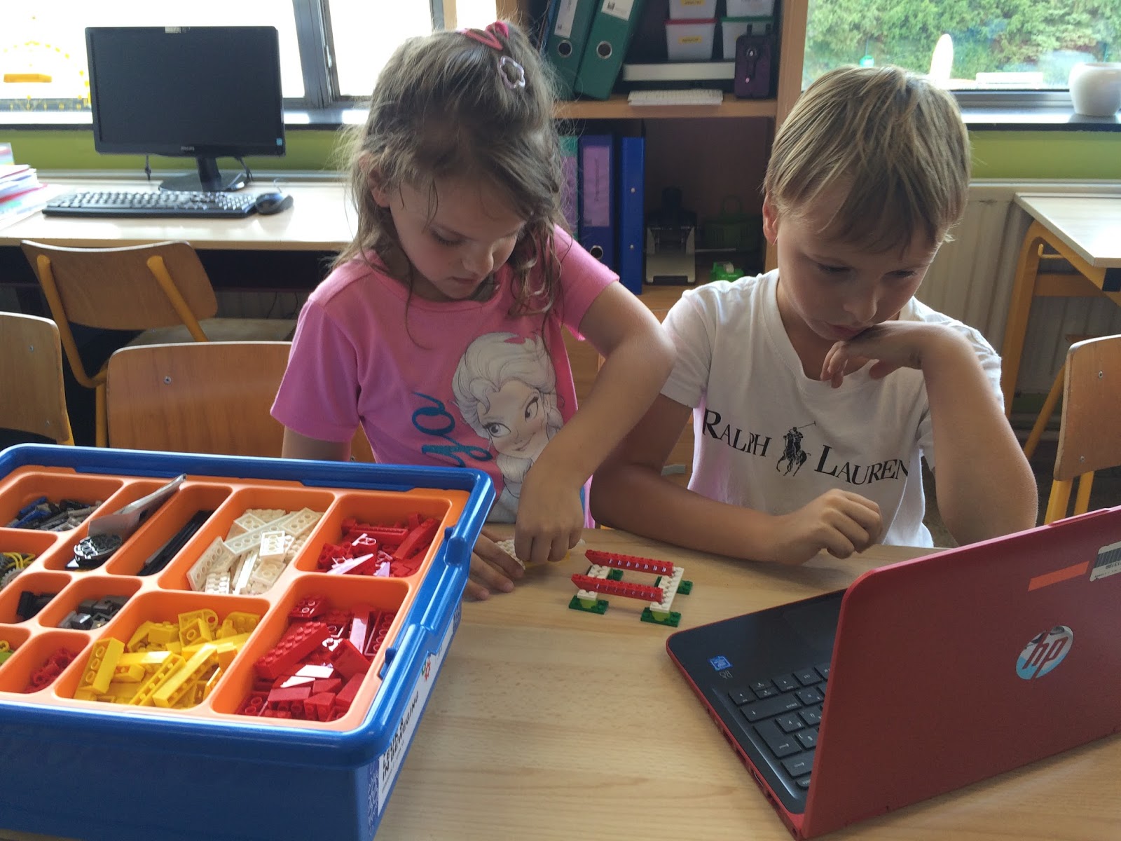 Wat een super leuke namiddag!! We zijn vandaag gestart met ons legoproject. Dit project zal 3 weken duren. Sofie (de mama van Janneke maar ook techniekleerkracht op de Middenschool) kwam ons vandaag ondersteunen. Per 2 mochten we een krokodil maken, maar dit was niet zomaar een krokodil. Stapje voor stapje werd de krokodil opgebouwd, 1 iemand volgde de stapjes op de laptop, de andere mocht de legoblokjes zoeken en mocht bouwen. Samenwerken was dus echt wel belangrijk! Op het einde, als de krokodil klaar was, konden we deze aansluiten op onze laptop en konden we deze programmeren. Je kon er geluidjes aan toevoegen, je kon de bek open en toe laten gaan en nog veel meer.